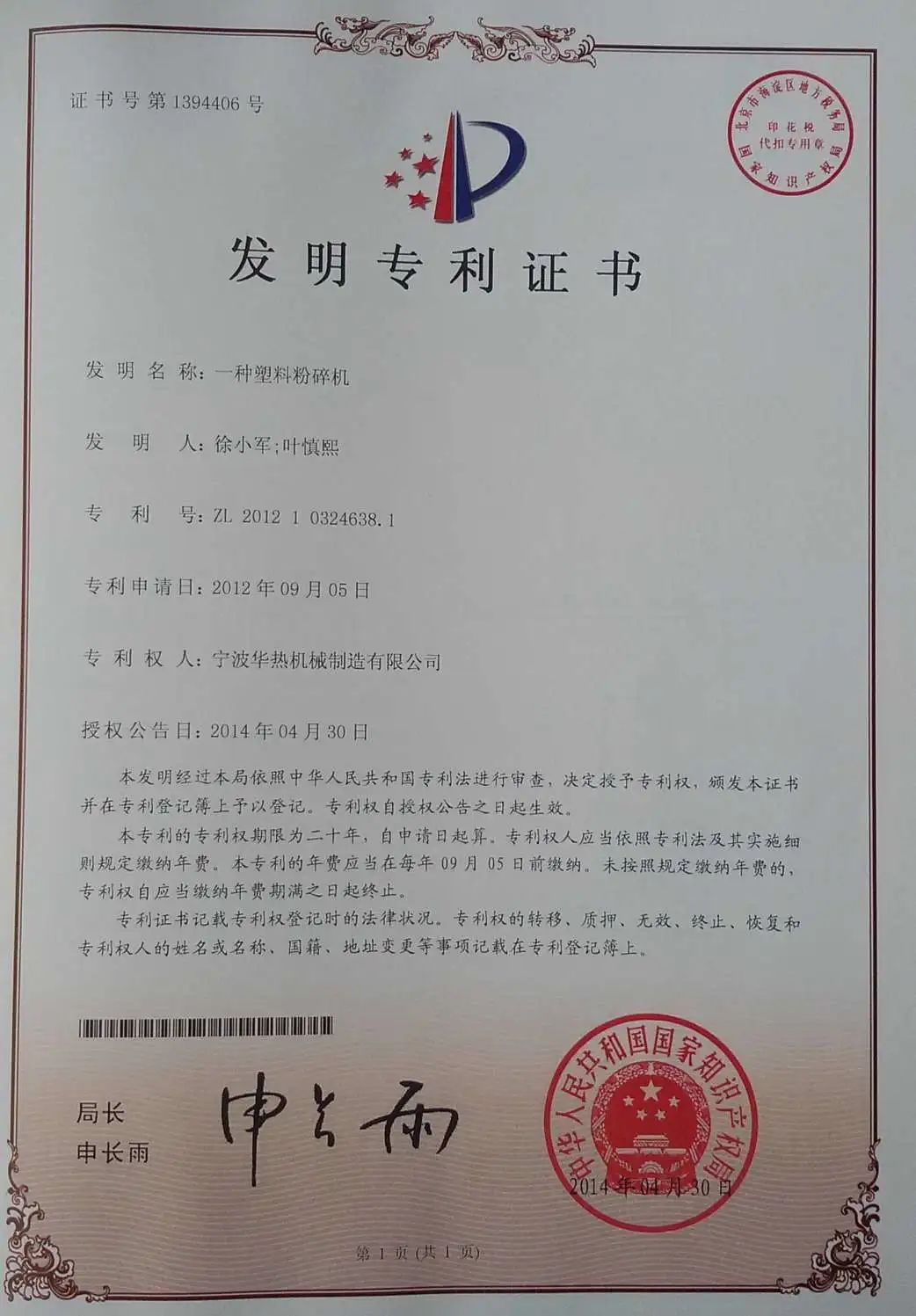 华热机械目前已获颁实用新型20余项,计算机软件著作权4项,发明专利3项,此次又获得“一种模温控制水路快速切换管路及其控制方法”发明专利,近年来,华热机械已逐步在橡塑辅机技术领域筑造出属于自己的核心自主知识产权。
